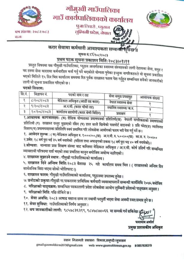 करार सेवामा कर्मचारी आवश्यकता सम्बन्धी सूचना ।।