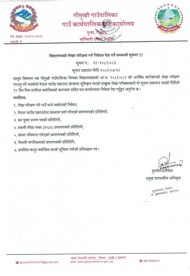 » विद्यालयको लेखा परीक्षण गर्न निवेदन पेश गर्ने सम्बन्धी सूचना !!!