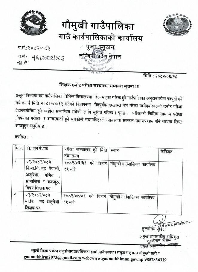 गौमुखी गाउँपालिकाको सरकारी सेवा तयारी कक्षा सञ्चालन सम्बन्धी सुचना