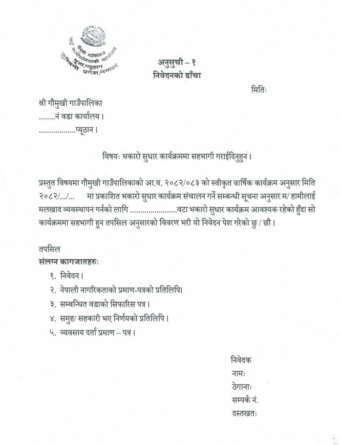 दरखास्त फारम - गाैमुखी गाउपालिका