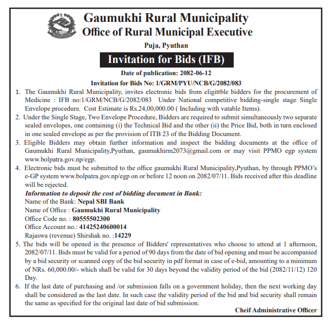 सार्वजनिक खरिद/बोलपत्र सूचना